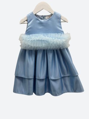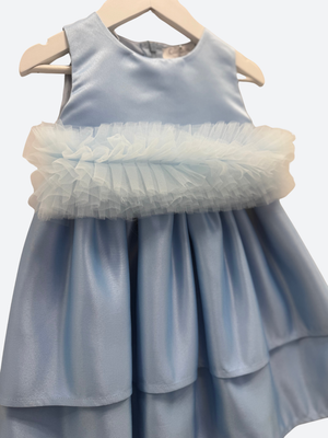 Abito in raso con dettaglio tulle pon pon sul girovita