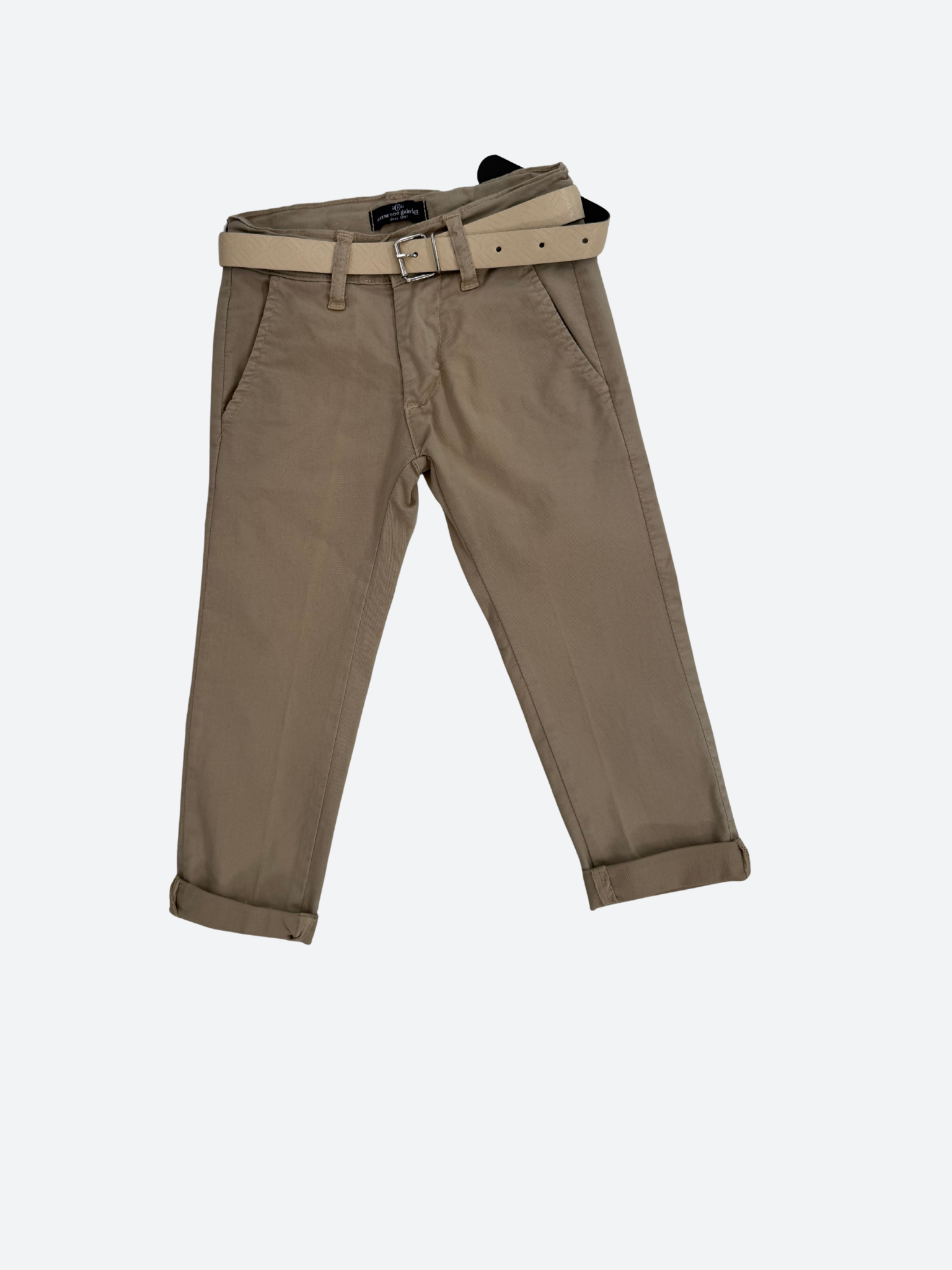 Completo in cotone composto da pantalone regolabile con cintura in ecopelle, gilette con fazzoletto e papillon e camicia a maniche lunghe