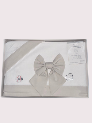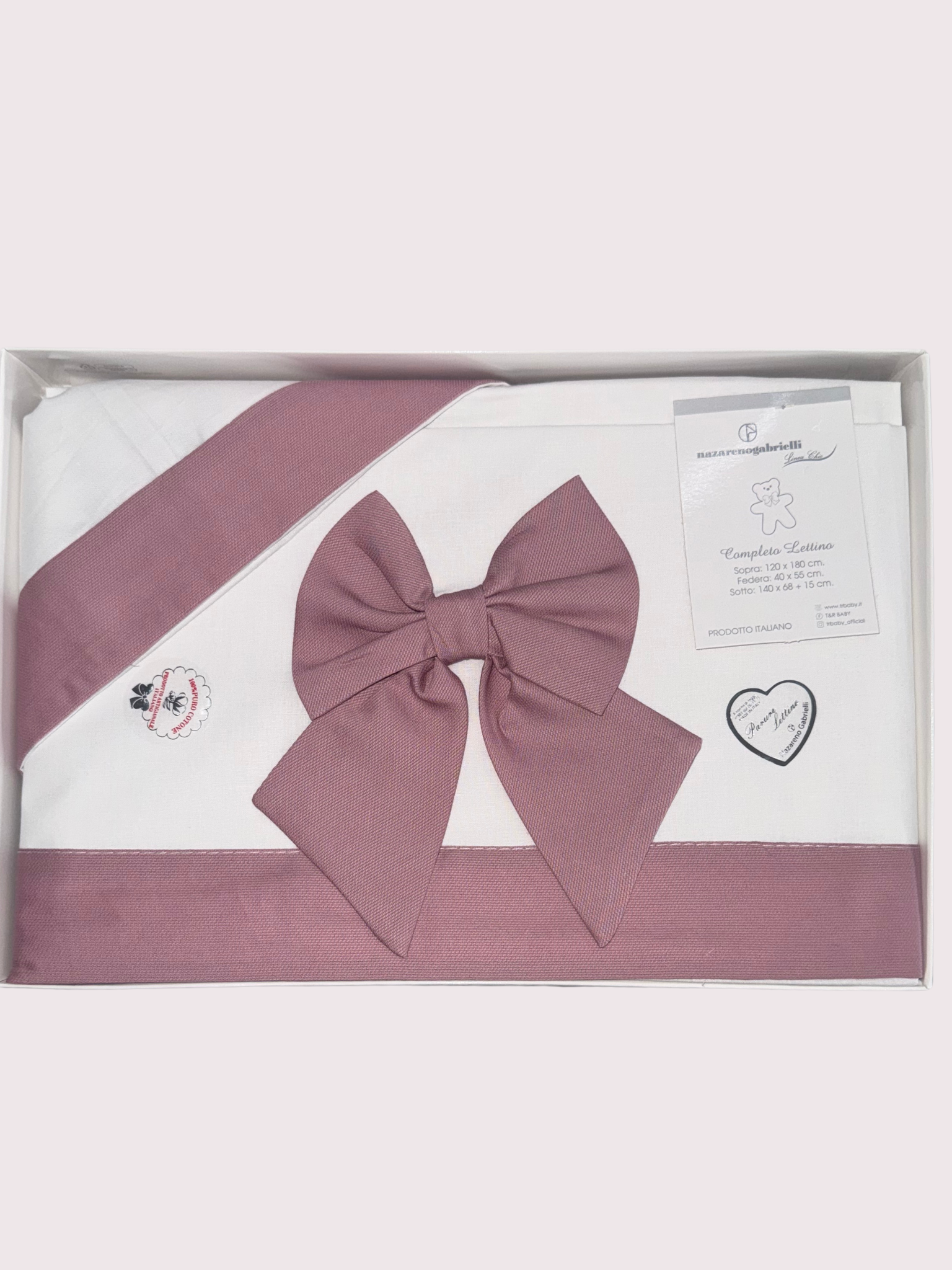 Set composto da federa per cuscino, sotto con angoli e lenzuolo con stampa.