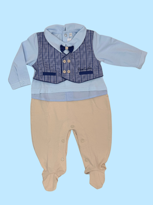 Questa tutina firmata Pierre Cardin è la scelta ideale per cerimonie, battesimi ed eventi speciali. Realizzata in morbido cotone delicato sulla pelle, unisce la comodità di una tutina pratica all’eleganza di un completo con effetto camicia, gilet a quadri e papillon coordinato. I dettagli curati, i bottoncini decorativi e le tonalità raffinate rendono questo capo perfetto per vestire il tuo bimbo con stile senza rinunciare al comfort. Facile da indossare grazie alle pratiche chiusure, è pensata per garantire libertà di movimento e benessere per tutta la giornata. Un’idea perfetta per chi cerca un completo neonato elegante ma comodo, adatto ai momenti più importanti.