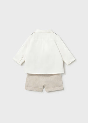 Outfit consisting of a shirt with a faux waistcoat and matching Bermuda shorts